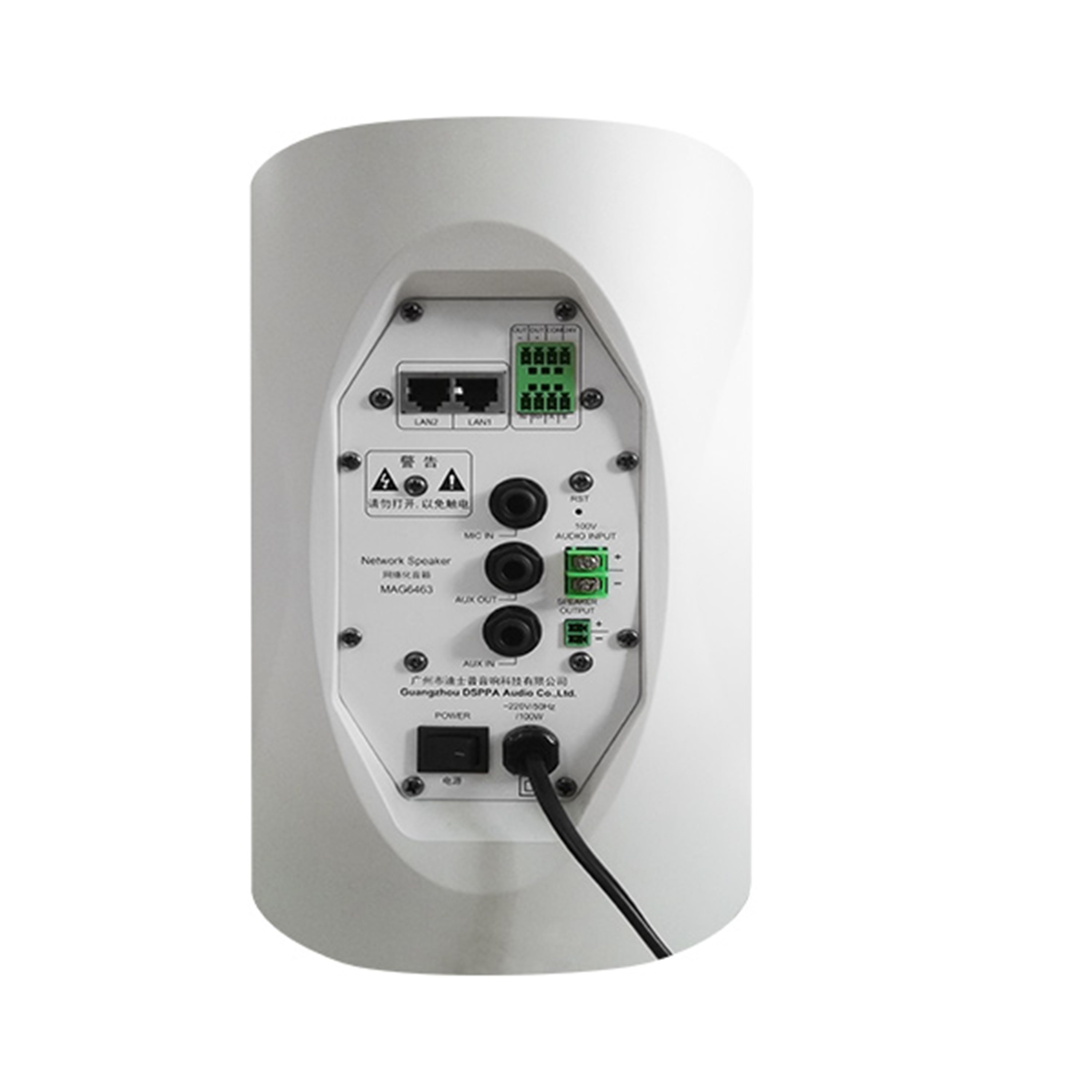 MAG6463B Network Speaker is adaptive 100/10Mbp, TCP/IP network transmission protocol. Support infrared remote control and easy to connect with the local fire alarming system. This speaker can be applied to different occasions vary in area sizes and background noises. It is made of high quality engineering plastic and waterproof grille, which ensures long-term durability, and will never be out of shape or fading. Built in Hi-Fi speaker for clear and sonorous sound. It is an ideal choice for industrial and commercial applications in hotel, school, office and factory where background music and paging is needed.